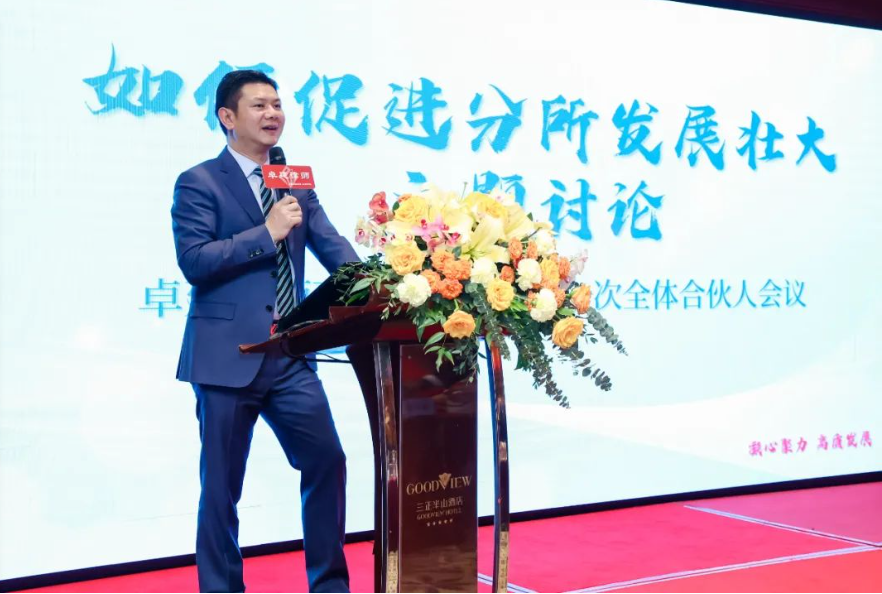 卓建已经建立起了适度规模化,卓建也已经具备了较好的质量基础,卓建文化的感染力不断增强,卓建品牌影响力持续提升。面向未来,契合“凝心聚力,高质发展”的主题,张斌主席提出了四点重要意见:第一,全力以赴聚焦高质量发展。从人的质量(律师和运营管理人才)、产品和服务能力(客户质量,满意度、口碑)、管理水平和品牌影响力(业内、客户)等相关指标去深入发展。要搞好高质量发展,要做好以下几个方面的工作:1.全力推进专业化建设。杜绝端口把控,充分竞争和合作,良性发展。2.着力推进文化建设。文化是卓建品牌崛起的差异化路径,不能放弃,要继续沉淀和总结,升华。要发挥好卓建法律博物馆的效用。3.重点推进人才引进,加大稀缺人才招选的力度,补全业务链条。4.着力推进业绩提升,增收节支。引入资本业务团队,加强总分所业务协调。第二,深入推进一体化建设,提升一体化运营能力和管理水平。1.完善管理制度,尤其是章程为核心的制度需要进一步优化。2.业务一体化,业务中心,协力团队,强执中心,合规研究院要搞好持续建设,做出成效。3.加强一体化人才的培养。第三,凝心聚力推进各项工作,开好局,起好步。1.紧跟经济和社会发展的需求,敢于创新。2.做好一主两辅的落地和归位。3.做好管委会的改选工作。4.加大对青年律师的支持。5.拿出卓建自己高质量发展的十大举措。6.加大对分所的指导,协调,赋能和输出。7.加大涉外法律服务的扶持力度。8.加大对执行力的督导。第四,对合伙人的要求和期望。合伙人以及各分所主任和创始人是卓建的梁柱和核心,要更有格局和担当。坚守立场,在把业务做好的同时,还要促进融合。合伙人要“立公心,树正气,守规矩,促团结”。团结和奋斗是卓建成功的法宝,要继续发扬光大。张斌主席还勉励全体合伙人和卓建家人,以本次合伙人会议为新起点,踏上新征程,迈上新台阶,再创新辉煌。
